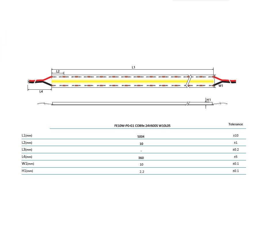 Cirio COB led strip 50W, 2700K/3000K/4000K/6000K cct options, 90lm/W, 10W/meter, 5m/roll, 24Vdc operating voltage, 180 degree beam angle, 600led/m, 10mm width, 2.2mm height, 35000Hr life , CRI>90, copper clad flexible pcb, white finish, IP20, 3yrs warranty.