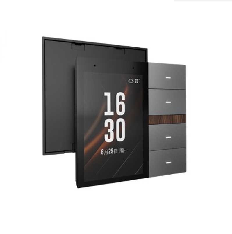 Creon Velora LX series Intelligent Control Switch Black Finish, Input voltage AC 110-240~50/60Hz, Live & Neutral wiring., Load – Inductive ≤ 700W/Gang LED: ≤ 300W/Gang 16A max, ZigBee and WiFi Direct protocols, V0 Fire-retardent PC/ Skin surface Aluminum Material. Electric lifespan 100,000 times, Protocol IEEE 802.15.4, 2.4GHz, Screen: 3.1 ” Resolution: 800 * 480, Size (LxWxH), 86x86mmx34.1mm, Grey Black std, Custom colour available, RAM: 1GB-4GB LPDDR4, ROM: EMMC FLASH 64G (optional). Voice Control, Working Temperature -20°C to 45°C.